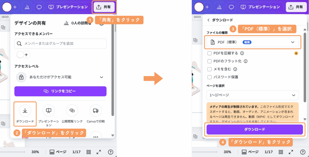 - 「PDF(標準)」を選択