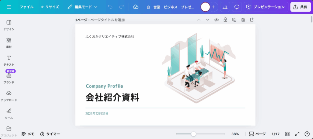 それでは、実際にCanvaを使ってプレゼン資料を作成してみましょう。